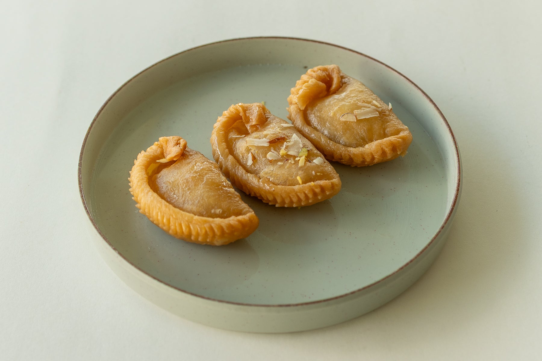 "Experience the sublime essence of Chandrakala, a delicacy that embodies the essence of Indian tradition. Crafted with the finest ghee and delicate layers of sweetness, each bite is a symphony of flavor and texture.  Let the aroma of ghee-infused sweetness transport you to a world of timeless indulgence, where every bite is a celebration of heritage and flavor."